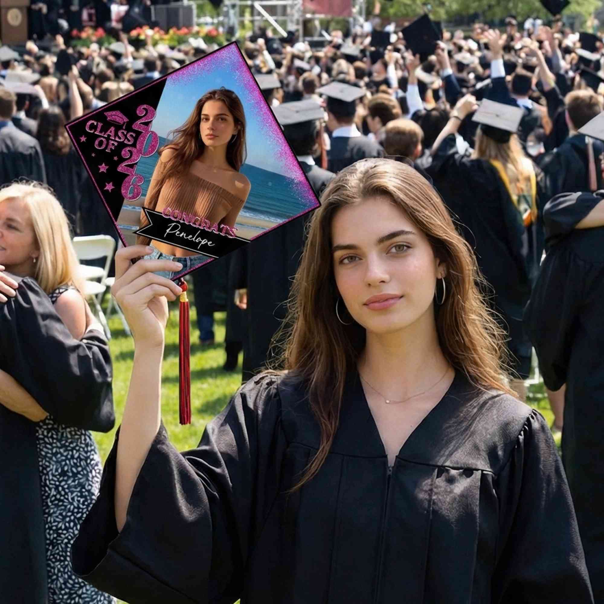 Fully Personalized - Add your name, graduation year, and favorite photo for a unique keepsake. The customization turns each piece into a one-of-a-kind grad cap topper that reflects your journey and achievement.